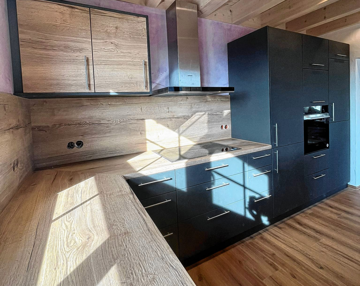 Schreinerei: Ob stilvolles Schuhmöbel, funktionale Garderobe oder maßgeschneiderte Einbauküche – die Schreinerei von Holzbau Baumann verwandelt Holz in Wohnideen. Mit handwerklicher Präzision, modernem Maschinenpark und mit einem feinen Gespür für Design entstehen Unikate, die sich perfekt in das Zuhause einfügen, vom Schuhmöbel bis zum Schreibtisch, vom Bett bis zum Esstisch. Die Baumann-Einbachküchen überzeugen nicht nur optisch, sondern sind auch ergonomisch und praktisch bis in den letzten Winkel durchdacht.